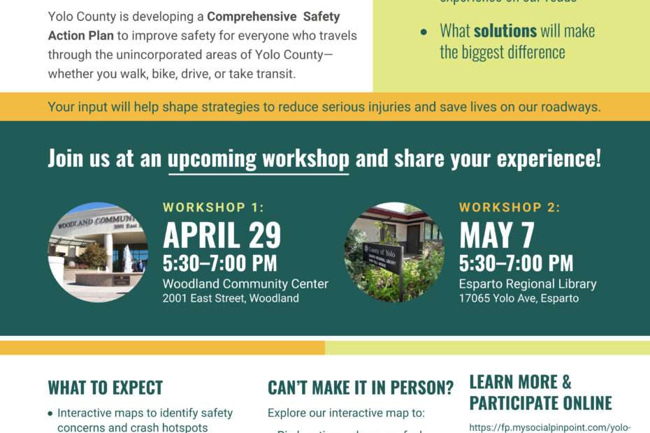 Can’t make it? Click to participate online or ( https://fp.mysocialpinpoint.com/yolo-county-csap ) There is an interactive map where you can mark travel safety issues on the county roads