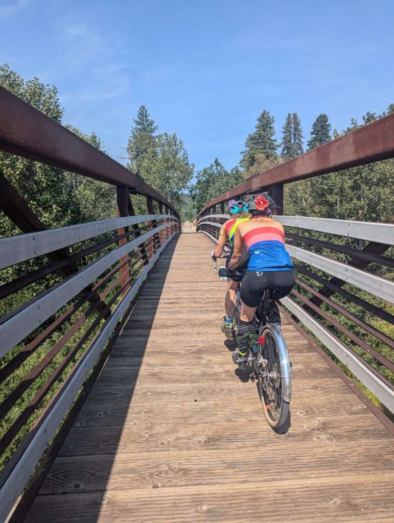 The 600k riders departed for Davis on Day 2, while the 1000k and 1200k riders headed to Antelope Lake, Susanville, and the Bizz Johnson. Retired Davis RBA’s Dan Shadoan and Daryn Dodge who created the original GRR, awaited riders at the Antelope Lake dam with encouragement and refreshments. Riders continued over Janesville Grade to Susanville, upon which they began the Bizz Johnson section. For sure, everyone was taxed by riding the Bizz, it slowed everyone down, but not enough to put anyone’s ride in jeopardy. In fact, most everyone talked about it as a highlight of the ride. Eric, riding in vans, Carhart shorts and a T-shirt, really enjoyed the Bizz. He rides quite a lot of dirt, and this was just a part of another day on the bike.